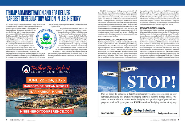 The Endangerment Finding was a legal prerequisite used by the Obama and Biden Administrations to regulate GHG emissions. In the 16 years since the Endangerment Finding, many of the predictions and assumptions used to justify the rule did not materialize. Using the same types of models utilized by the previous administrations and climate change zealots, EPA now finds that even if the U. S. were to eliminate all GHG emissions from all vehicles, there would be no material impact on global climate indicators through 2100. Therefore, maintaining GHG emission standards is not necessary for EPA to fulfill its core mission of protecting human health and the environment, but regardless, is not within the authority Congress entrusted to EPA. Today’ s action is only related to GHG emissions and does not affect regulations that combat criteria pollutants and air toxics. The Trump EPA’ s final rule dismantles the tactics and legal fictions used by the Obama www. fueloilnews. com | FUEL OIL NEWS | MARCH 2026 11