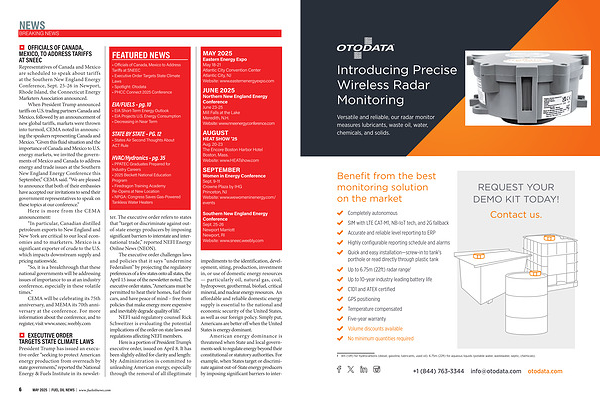 President Trump has issued an executive order“ seeking to protect American energy production from overreach by state governments,” reported the National Energy & Fuels Institute in its newsletter. The executive order refers to states that“ target or discriminate against outof-state energy producers by imposing significant barriers to interstate and international trade,” reported NEFI Energy Online News( NEON).