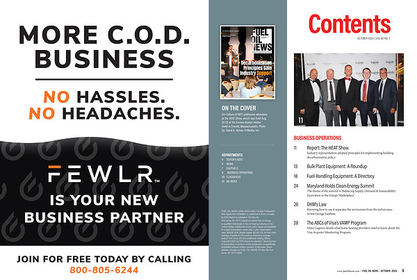 FUEL OIL NEWS( ISSN 0016-2396), Canada Publication Mail Agreement # 1588621, is published 9 times annually by EPG Brand Acceleration, PO Box 96, Port Jervis, NY 12771. Digital circulated free of charge to qualified individuals in the oil heating industry in the United States. Additional and / or print copies are available on a paid subscription basis only. 1-year subscription rates: $ 40.00 USA. Single copies: $ 12.00 U. S. via first-class postage. Payable in US currency. Periodical postage paid at Port Jervis, NY and additional mailing offices. Copyright 2025 by EPG Brand Acceleration. Reproduction of any portion or portions of this publication is specifically prohibited without written consent. Postmaster: Send address changes to FUEL OIL NEWS, PO Box 96, Port Jervis, NY 12771-0096.