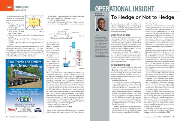 a tee , it has to come out , but how the water goes in and out of a tee is really what matters . With a diverter tee fitting the diverter does the work and sends the water along the right path , Figure 14 , but there are no diverter tees in the basic Primary-Secondary system , although as you ’ re about to see they could be in the secondary loop ( s ). Water always takes the path of least resistance and so as the water enters the tee it ‘ sees ’ that it can travel right along without any resistance or take that branch cut-off , which is more work , so it keeps going straight through . The reason why it ’ s more work is because of the circulator in the way and the resistance put up by the other fittings in the branch circuit that make up the Secondary loop . The trick is to keep those tees closely spaced and no more than six pipe diameters apart . With ¾ ” pipe your goal is to keep the branches no more than 4-½ ” apart . If you put them too far apart , water may start to think that going through the Secondary loop is easier and that will ruin your day . Again , using a fitting like the one shown in Figure 15 eliminates the problem . We ’ ll pick this up again in Part Two . Thanks for reading this and see ya ! l FON