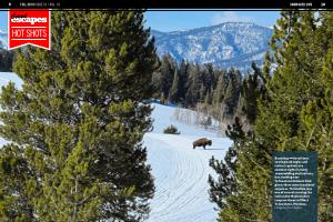 Bounding whitetail deer , soaring bald eagles and curious squirrels are common sights in many snowmobiling destinations , but sledding near Yellowstone National Park gives riders some occasional surprises . This buffalo was one of several crossing the trail on the Madison Arm Loop northwest of West Yellowstone , Montana . Image by Tom Kaiser