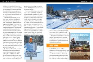 SNOWGOER . COM 53 for fly-in vacationers ) on I-90 and then powering through occasional snow drifts on twisting Highway 14 into Deadwood . Stressed knuckles occasionally turned white when the trailer danced behind us , but the white stuff coming out of the sky warmed our hearts .