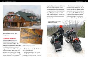 After marveling at the frozen-intime falls and towering icicles overhead , we motored into Big Bay — the only services we ’ d encounter for the next several hours . A carnivore ’ s lunch of burgers was found inside the weathered Lumberjack Tavern . With creaky , worn hardwood floors , decorative tin ceilings and a massive antique chainsaw hanging from the ceiling , the Lumberjack is immediately welcoming to riders , but there ’ s much more to the story .