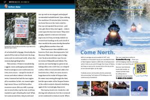 There was more than wildlife to see , however . First came the impressive Carl Sherman Memorial suspension bridge over the Aroostook River near the sister towns of Masardis and Oxbow . The narrow , one-lane bridge is a piece of art , taking riders over a 165-foot , arc-shaped surface with a wood and steel cable overhead structure . Next , we came across a large dam at the outlet of Scopan Lake . No water was coming through the dam , but the open water of the Scopan Stream at the outlet created a dramatic backdrop against the increasingly deep snow .