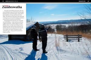 The park is interesting and scenic , with the trail winding its way up the bluff and through a grassland area and eventually to a place where snowmobilers can stop and look over Lake Pepin . This section of trail hadn ’ t been groomed in a long time , so it was slow going up and down as we all tried to find the smoothest line .