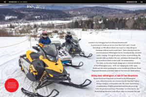 Saturdays , so Woodford allows me to put in a day riding on Sundays without much travel time .” And a family from Connecticut praised Wilmington for its “ mostly family-oriented trails ,” saying , “ It ’ s a great place to learn snowmobiling . We can ski with our kids in the a . m . and when the slopes fill up , go out with our kids on the trails ” on snowmobiles . The kids , on the other hand , disagreed on the best attribute of the Wilmington area – with one enjoying the wide-open fields and the other praising the scenic backdrop of Mount Snow , Haystack Mountain and other historic Vermont ski destinations .