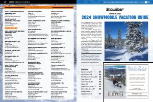 47th Annual Edition 2024 SNOWMOBILE VACATION GUIDE Some people will never know the glory of snowmobiling on a day when snow hangs from every branch after a fresh coating painted the woods and trails bright white overnight .