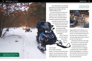 Ogemaw Hills , the Au Sable River and the Huron National and Au Sable State Forests . Our club maintains and grooms 105 miles of trail and that ’ s just a portion of the larger system that is serviced by a half dozen groomers .” Lubahn had invited Snow Goer magazine to visit and write about the club and when the full-time edit staff passed along that invitation to me and Dan Guendert , we happily accepted the offer . It was a long drive around Lake Michigan from our Wisconsin homes ( Dan went over the top of the lake , I went around the bottom ), but it was well worth the effort .