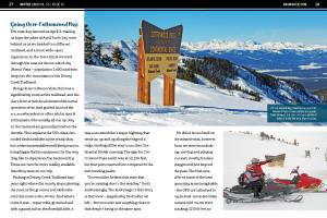 was a snowmobiler ’ s super highway that went up , up and up along the edge of a ridge , leading all the way to another Continental Divide crossing . The sign for Cottonwood Pass said it was at 12,126 feet , but that point seemed low compared to the surrounding peaks .
