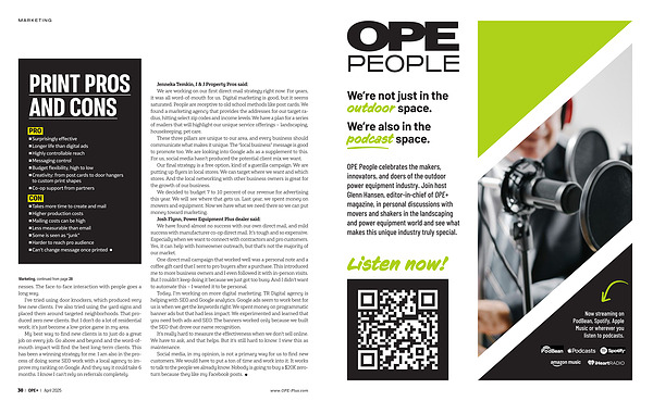 We decided to budget 7 to 10 percent of our revenue for advertising this year. We will see where that gets us. Last year, we spent money on mowers and equipment. Now we have what we need there so we can put money toward marketing. Josh Flynn, Power Equipment Plus dealer said: We have found almost no success with our own direct mail, and mild success with manufacturer co-op direct mail. It’ s tough and so expensive. Especially when we want to connect with contractors and pro customers. Yes, it can help with homeowner outreach, but that’ s not the majority of our market.