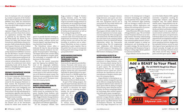 SEGWAY VISIONFENCE SENSOR FOR ROBOTIC MOWERS At the recent spoga + gafa 2023 exhibition in Cologne , Germany , Segway showcased the newly launched VisionFence sensor for the company ’ s Navimow robotic mowers . The AI-powered sensor makes it possible for users to mow complex lawns even more intelligently and precisely , reports Segway . The Vision- Fence sensor ’ s AI chip and advanced visual-detection algorithm also help Navimow to detect objects in its mowing path faster and more accurately .
