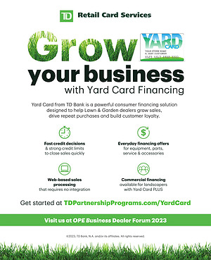 Yard Card from TD Bank is a powerful consumer financing solution designed to help Lawn & Garden dealers grow sales , drive repeat purchases and build customer loyalty .