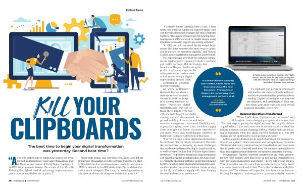 All of this technology is happening across our lives , but not in dealerships ,” said Sean McLaughlin , CEO of Flyntlok and owner of Craig Taylor Equipment , an OPE dealer group in Alaska . “ On a scale of 1 to 10 , with 10 being the highest level of technology implementation , power-equipment dealers are at about 2 .”