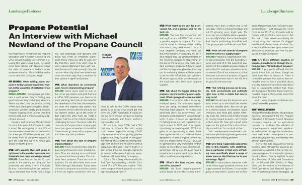 We met Michael Newland of the Propane Education and Research Council at the OPEI annual meeting last summer . Following this year ’ s Equip Expo , we spent more time talking with Newland about the state of propane in today ’ s power equipment market . We edited that online conversation for clarity and length .