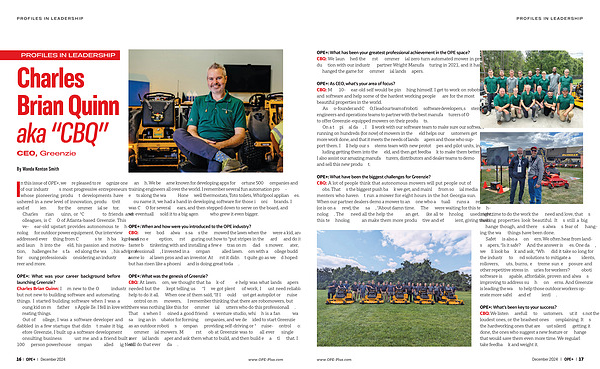 OPE +: What has been your greatest professional achievement in the OPE space ? CBQ : We launched the first commercial zero turn automated mower in production with our industry partner Wright Manufacturing in 2021 , and it has changed the game for commercial landscapers .