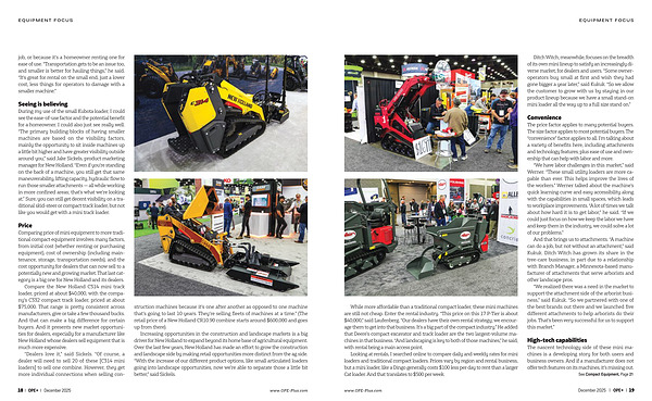 Comparing price of mini equipment to more traditional compact equipment involves many factors, from initial cost( whether renting or purchasing equipment), cost of ownership( including maintenance, storage, transportation needs), and the cost opportunity for dealers that can now sell to a potentially new and growing market. That last category is a big one for New Holland and its dealers.