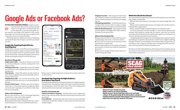 Ben Theis is the CEO of Skol Marketing, a Minneapolis-based marketing agency serving clients with website services, social advertising and SEO planning, and social media management. www. OPE-Plus. com July 2025 OPE + 15