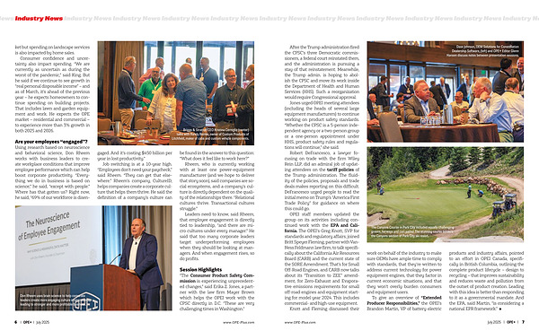 products and industry affairs, pointed to an effort in OPEI Canada, specifically in British Columbia, outlining the complete product lifecycle – design to recycling – that improves sustainability and reduces waste and pollution from the outset of product creation. Leading with this idea is better than responding to it as a governmental mandate. And the EPA, said Martin,“ is considering a national EPR framework.”