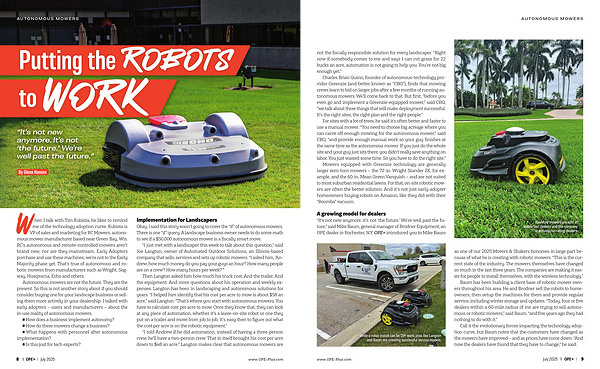 While a robot install can be DIY work, pros like Langton and Baum are creating successful service models. as one of our 2025 Movers & Shakers honorees in large part because of what he is creating with robotic mowers.“ This is the current state of the industry. The mowers themselves have changed so much in the last three years. The companies are making it easier for people to install themselves, with the wireless technology.”