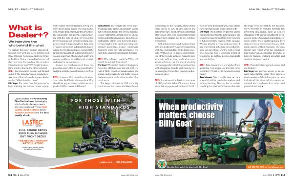 OPE +: Data , by nature , is a snapshot from yesterday . Can people use this data to be predictive ? What is its forward-looking value ? Dave Johnson : Data from the past can be a powerful tool for predictive analysis and future planning . The key lies in understanding that past performance often sets the stage for future trends . For instance , we ’ ve observed in multiple markets that inventory challenges , such as dealers struggling with either insufficient or excessive stock , often signal impending economic shifts . These shifts typically drive dealers to focus more on service as a profitable aspect of their business . Our data doesn ’ t just reflect what has happened ; it provides valuable insights into what is likely to happen , enabling proactive and strategic decision-making .
