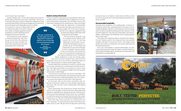 LANDSCAPE AND OPE DEALERS just need some oil or blades or small items , and they can get in and out quick . We don ’ t allow big wholegoods purchases on those accounts .”