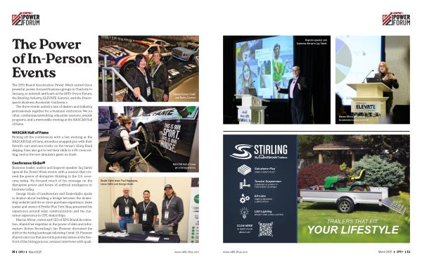 The EPG Brand Acceleration Power Week united three powerful , power-focused business groups in Charlotte in January , to network and learn at the OPE + Power Forum , the Boating Industry ELEVATE Summit , and the Powersports Business Accelerate Conference .