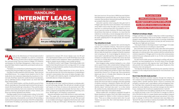 study on the effectiveness of internet leads is kind of like shining a flashlight on a roach in a restaurant kitchen . You don ’ t have to tell the restaurant owner the cockroach is bad .” That was Cameron O ’ Hagan , V . P . of Metrics and Analytics for Pied Piper Management , a data science company that helps retailers in agriculture , powersports and automotive industries .