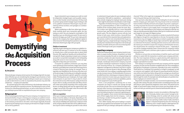 Many landscape company owners pursue the strategy of growth via acquisition . Whether you are considering this strategy for your business or have been approached by a larger company looking to acquire your company as an add-on ( also known as a bolt-on acquisition ), the process may seem like a black box — complex and unfamiliar .