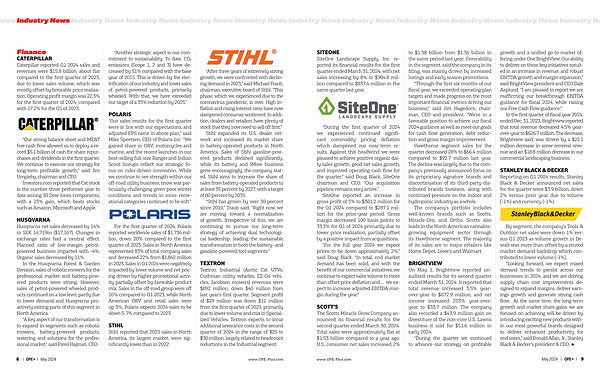 CATERPILLAR Caterpillar reported Q1 2024 sales and revenues were $ 15.8 billion , about flat compared to the first quarter of 2023 , due to lower sales volume , which was mostly offset by favorable price realization . Operating profit margin was 22.3 % for the first quarter of 2024 , compared with 17.2 % for the Q1 of 2023 .