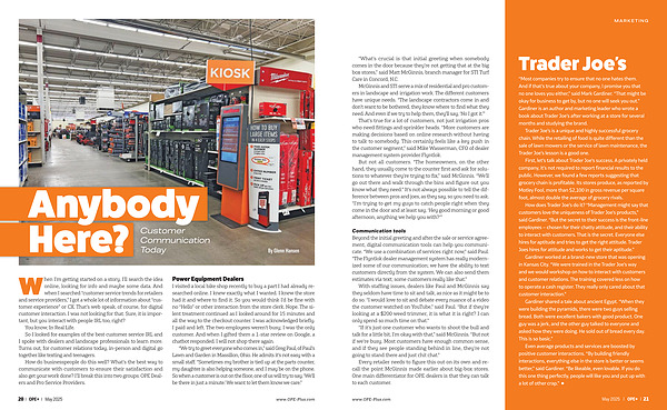 Every retailer needs to figure this out on its own and recall the point McGinnis made earlier about big-box stores. One main differentiator for OPE dealers is that they can talk to each customer.