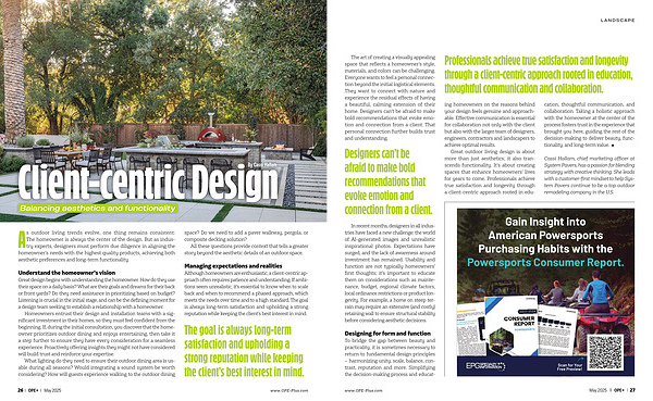 Great outdoor living design is about more than just aesthetics; it also transcends functionality. It’ s about creating spaces that enhance homeowners’ lives for years to come. Professionals achieve true satisfaction and longevity through a client-centric approach rooted in education, thoughtful communication, and collaboration. Taking a holistic approach with the homeowner at the center of the process fosters trust in the experience that brought you here, guiding the rest of the decision-making to deliver beauty, functionality, and long-term value.