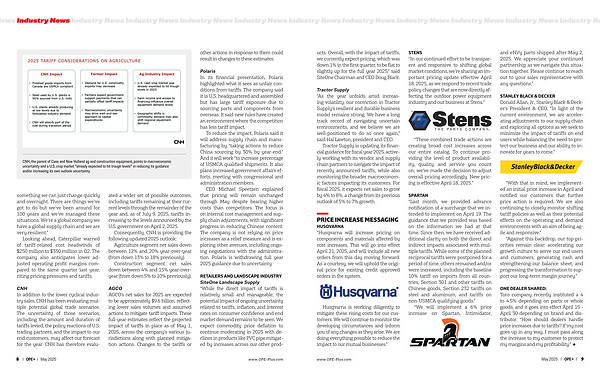 RETAILERS AND LANDSCAPE INDUSTRY SiteOne Landscape Supply“ While the direct impact of tariffs is relatively small and manageable, the potential impact of ongoing uncertainty related to tariffs, inflation, and interest rates on consumer confidence and end market demand remains to be seen. We expect commodity price deflation to continue moderating in 2025 with declines in products like PVC pipe mitigated by increases across our other prod-