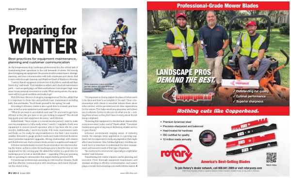 Winter preparation is about more than just fuel stabilizer ; it ’ s a time for strategic planning too . Photo provided by SiteOne “ It ’ s important to clearly explain the plans of what needs to be done and how to accomplish it ,” he said . “ Clear communication with clients is essential . Inform them about what services will be provided and set clear expectations for the season . This helps avoid any gray areas and allows you to educate clients on why you do what you do — putting them at ease so they don ’ t have to worry about the job being completed .