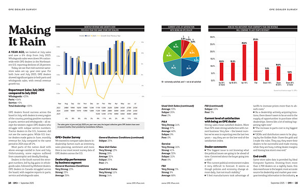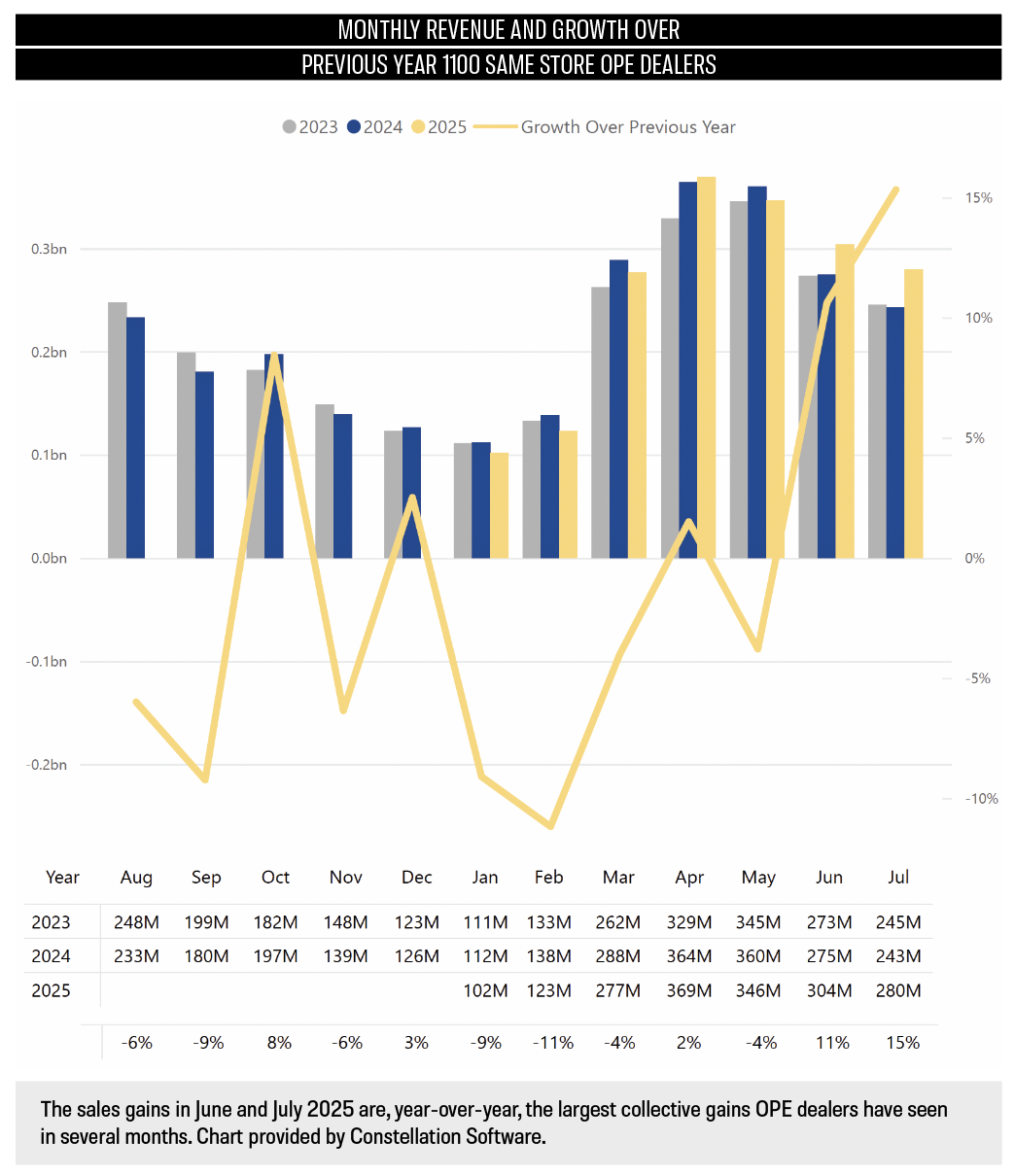 Today, we see that mid-summer same-store sales are up, year over year. For both June and July 2025, OPE dealers showed significant gains in both parts and wholegoods sales, with overall revenue growth too.