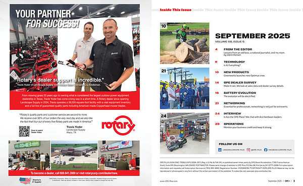 From mowing grass 20 years ago to owning what is considered the largest outdoor power equipment dealership in Texas, Travis Yoder has come a long way in a short time. A Rotary dealer since opening Landscape Supply in 2004, Travis operates a 38,000-square-foot facility with a vast equipment inventory and a full line of guaranteed quality parts including American-made Copperhead mower blades.