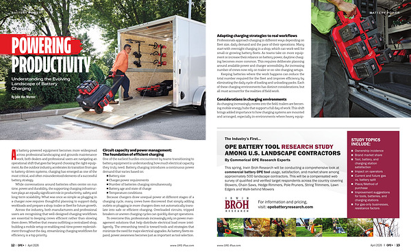 This spring, Irwin Broh Research will be conducting a comprehensive look at commercial battery OPE tool usage, satisfaction, and market share among approximately 500 landscape contractors. This will be a compensated web survey of qualified and verified target respondents across the country covering Blowers, Chain Saws, Hedge Rimmers, Pole Pruners, String Trimmers, Lawn Edgers and Walk-behind Mowers