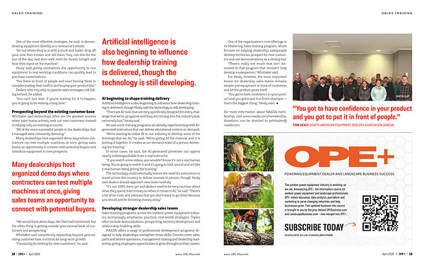 One of the organization’ s core offerings is its Mastering Sales training program, which focuses on helping dealership salespeople develop territories, prospect for new customers and use demonstrations as a closing tool.