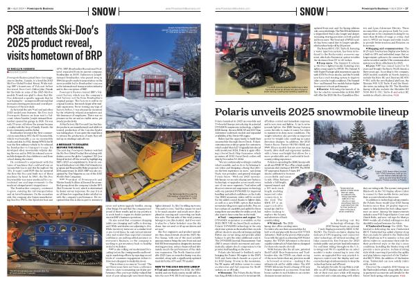 Powersports Business joined Snow Goer magazine in Quebec , Canada , to attend the 2025 Ski-Doo Global Product Reveal . While visiting BRP ’ s hometown of Valcourt before the reveal , Snow Goer ’ s Editor John Prusak hit the trails on some of the 2025 Ski-Doo models . Prusak was glad to share that Ski- Doo delivered a specific upgrade that he was hoping for – an improved front end that increases steering precision and overall performance of the new sleds .