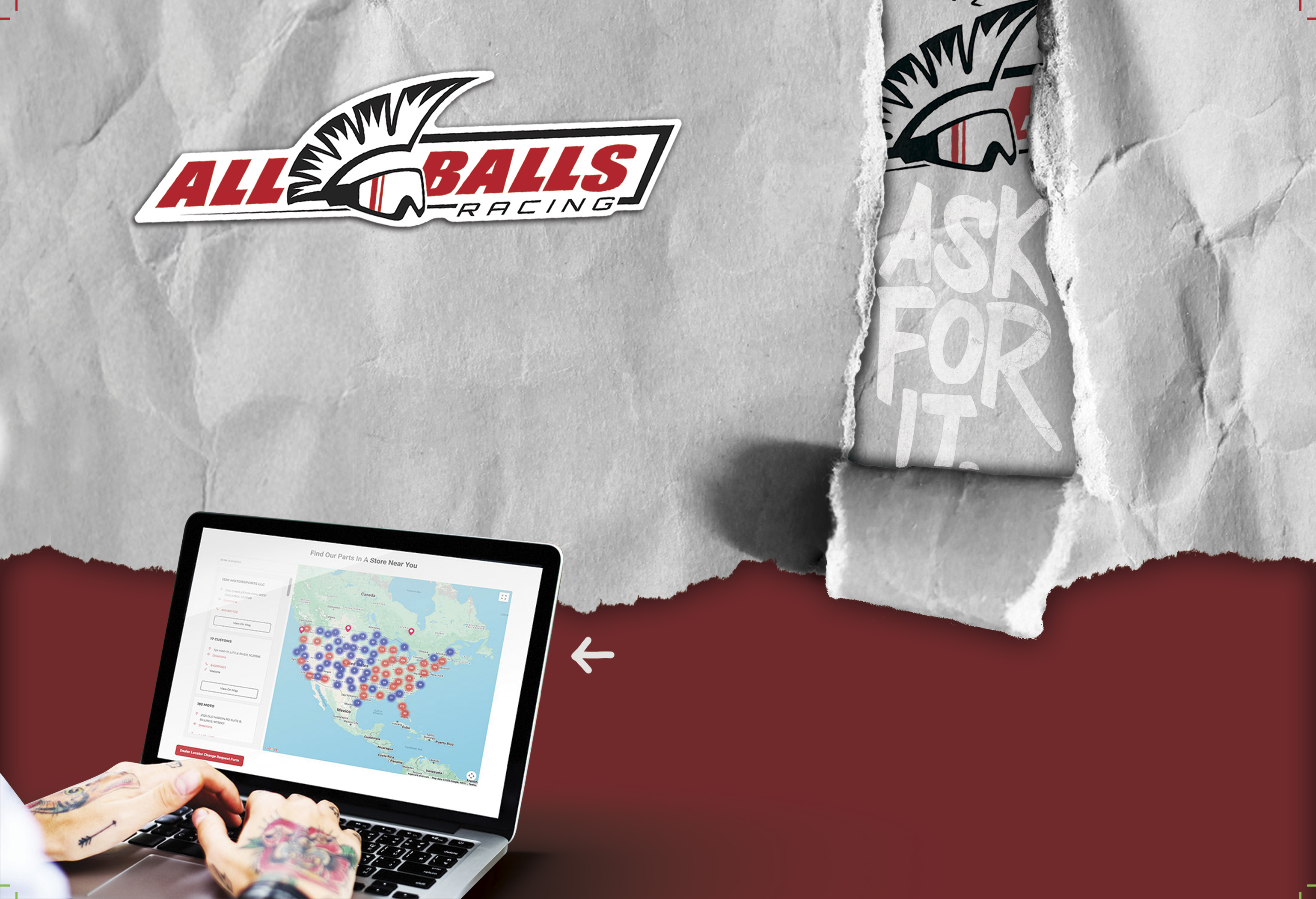 Visit allballsracing.com, click on the "Find a Dealer" tab and locate your favorite dealership. Make sure to ask for all balls racing parts!