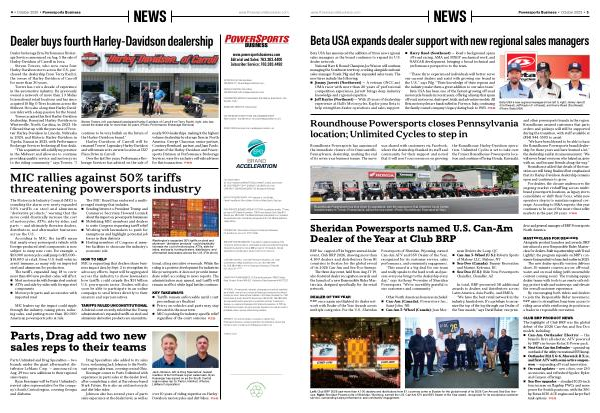 EDITORIAL: All manuscripts, materials, photographs and artwork submitted are at mailer’ s risk and must include self-addressed envelope with sufficient postage for return. Send editorial materials to EPG Brand Acceleration, 7760 France Avenue South, Suite 810, Bloomington, MN 55435, 763 / 383-4400. No responsibility will be assumed for unsolicited materials. Powersports Business is a registered trademark of EPG Brand Acceleration. © 2025 by EPG Brand Acceleration. All rights reserved. Reproduction in whole or part is prohibited unless expressly authorized by publisher.