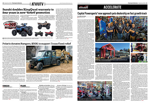 As far as unit sales, Dunn says Capital is well-rounded regarding which type of vehicles are coming off the lot. Two-thirds of unit sales from most dealerships in the Mid-Atlantic zone are off-road, while Capital is more of a 50-50 split between on- and off-road. But with the addition of Polaris, he’s expecting a jump in his off-road sales figures.