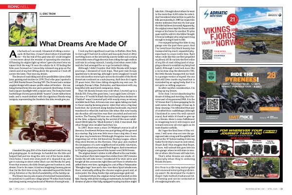 Although I didn ’ t burden that little Honda with longer journeys , I dreamed of such trips . That pint-size Dream sparked me to dream big , although I never imagined I would soon ride another motorcycle across the breadth of the North American continent on a solo journey . And then do it again 25 years later , this time riding alongside my own son . Or navigate Europe ’ s Alps , Dolomites , and Apennines with my beautiful wife and travel companion , Amy .