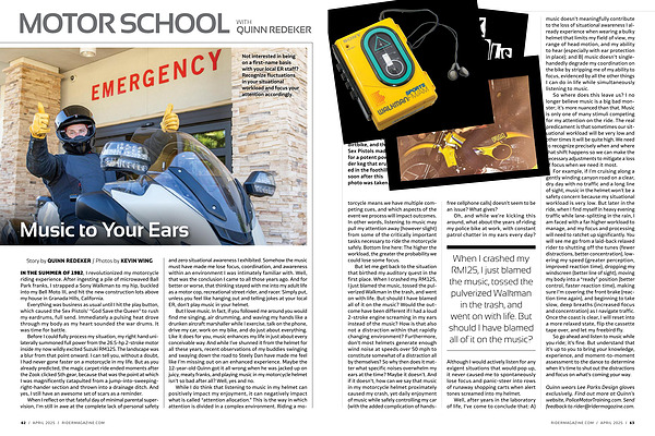 When I reflect on that fateful day of minimal parental supervision , I ’ m still in awe at the complete lack of personal safety and zero situational awareness I exhibited . Somehow the music must have made me lose focus , coordination , and awareness within an environment I was intimately familiar with . Well , that was the conclusion I came to all those years ago . And for better or worse , that thinking stayed with me into my adult life as a motor cop , recreational street rider , and racer . Simply put , unless you feel like hanging out and telling jokes at your local ER , don ’ t play music in your helmet .