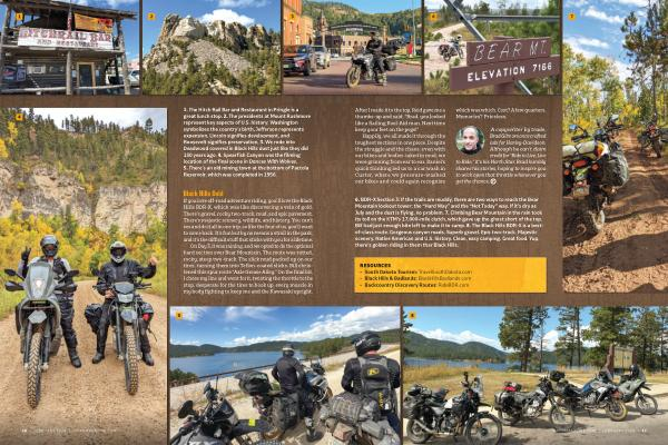 6 . BDR-X Section 3 : If the trails are muddy , there are two ways to reach the Bear Mountain lookout tower : the “ Hard Way ” and the “ Not Today ” way . If it ’ s dry as July and the dust is flying , no problem . 7 . Climbing Bear Mountain in the rain took its toll on the KTM ’ s 17,000-mile clutch , which gave up the ghost short of the top . Bill had just enough bite left to make it to camp . 8 . The Black Hills BDR-X is a bestof-class route . Gorgeous canyon roads . Superb gravel . Epic two-track . Majestic scenery . Native American and U . S . history . Clean , easy camping . Great food . Yup , there ’ s golden riding in them thar Black Hills .