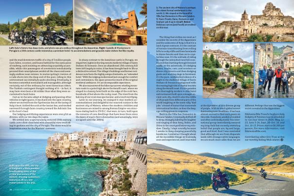 The thing that strikes me most as I consider the secrets of the Appenines and the unknowns of Italy is that it is a land of great contrasts . It ’ s the contrast of terrain transitioning from rolling hills to rocky cliffs and from farmlands to dense forests and then on to crystal blue seas . It ’ s the solitude of riding through the untouched rural hill country and then hurtling through frenzied traffic on the autostrada . It ’ s dodging buses , trucks , cars , and scooters on dense city streets and then dodging goats and working dogs in farmland . It ’ s the pure , undisturbed silence of a night in the medieval village of Santo Stefano di Sessanio juxtaposed with the roaring high tide of coastal tourists along the Amalfi coast . It ’ s the paradox of a thoroughly modern 4- star hotel and restaurant built upon a meager ancient cave city . And it ’ s also the riddle of 18 people from different parts of the world laughing at the same silly “ dad joke ,” a brand of humor that transcends international borders , as does the deep , eye- rolling groan in response .