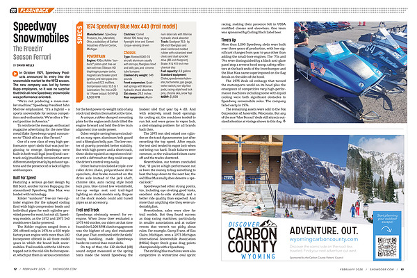 Speedways obviously weren’t for everyone. When Snow Goer evaluated a 1973 440 stocker, our riders at that time found the 5,200 RPM clutch engagement was the highest of any sled evaluated that year. That, combined with the sleds’ touchy handling, made Speedways harder to control than most sleds.