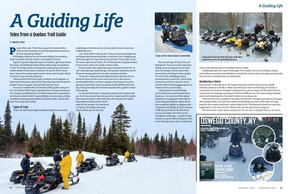 Last season, I took a group to the Gaspé Peninsula, which has the most volatile weather patterns in Quebec. When we woke up to start our first day of our trip, it had snowed 16 inches overnight. I adjusted our route to stay on all the main trails to cut back on the mileage, knowing it could be a difficult one. Our second day included some trail breaking since I decided to take a secondary trail.