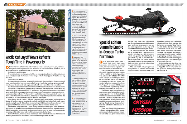 The Special Edition Summit Adrenaline with Edge Package snowmobiles will be available in limited quantities with either an 850 E-TEC or 850 E-TEC Turbo R engine in track lengths of 154 or 165 . They will also include a special accessories package and unique coloration to further separate them from the “ regular ” in-season 2025 Summit Adrenaline with Edge Package models that were announced last February .