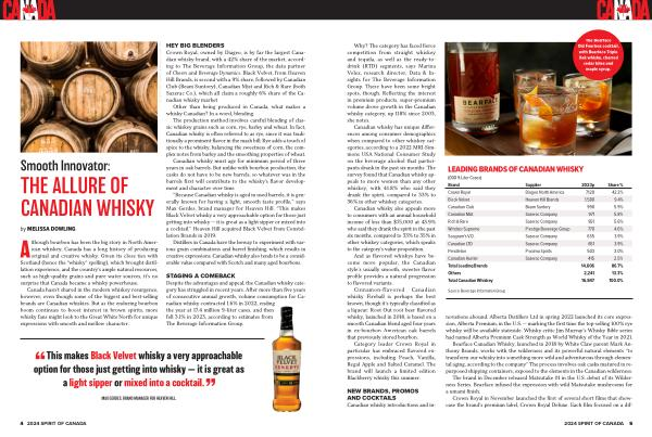 Why ? The category has faced fierce competition from straight whiskey and tequila , as well as the ready-todrink ( RTD ) segments , says Marina Velez , research director , Data & Insights for The Beverage Information Group . There have been some bright spots , though . Reflecting the interest in premium products , super-premium volume drove growth in the Canadian whisky category , up 118 % since 2003 , she notes .