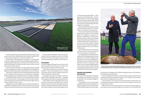Eight of the 16 venues being used don’ t currently have natural turfgrass. As a result, lessons learned throughout the research at UT and MSU will sportsfieldmanagementonline. com April 2025 | SportsField Management